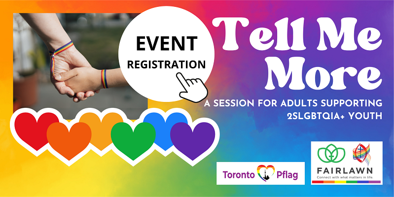 Fairlawn Avenue United Church’s Affirm Ministry and Toronto Pflag are partnering to host Tell Me More: An information session for adults supporting 2SLGBTQIA+ youth.
